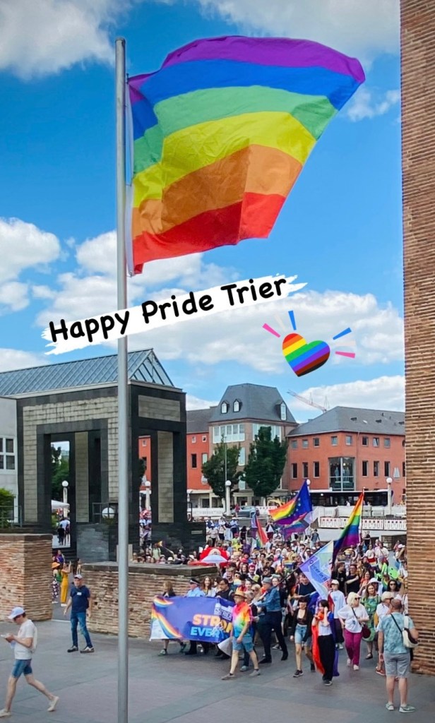Am Samstag, 16.7.2022, fand mit über 3000 Menschen der CSD in Trier statt, der an der Porta Nigra anfing und am Queergarten vom SCHMIT-Z endete. Ich war für die Schülerzeitung vor Ort, um zu berichten. Dann wurde ich mitgerissen und bin mitgegangen. Es war sehr bunt. Alle waren sehr nett und aufgeschlossen, auch die Menschen, die zugeguckt haben. Es gab kein Runtermachen. Jeder hat jedem Komplimente gemacht und die Sprüche auf den Schildern waren sehr kreativ. Auch eine queere Gruppe der Polizei ist mitgegangen. Das Fazit für mich: Das war etwas, das ich wiederholen will.