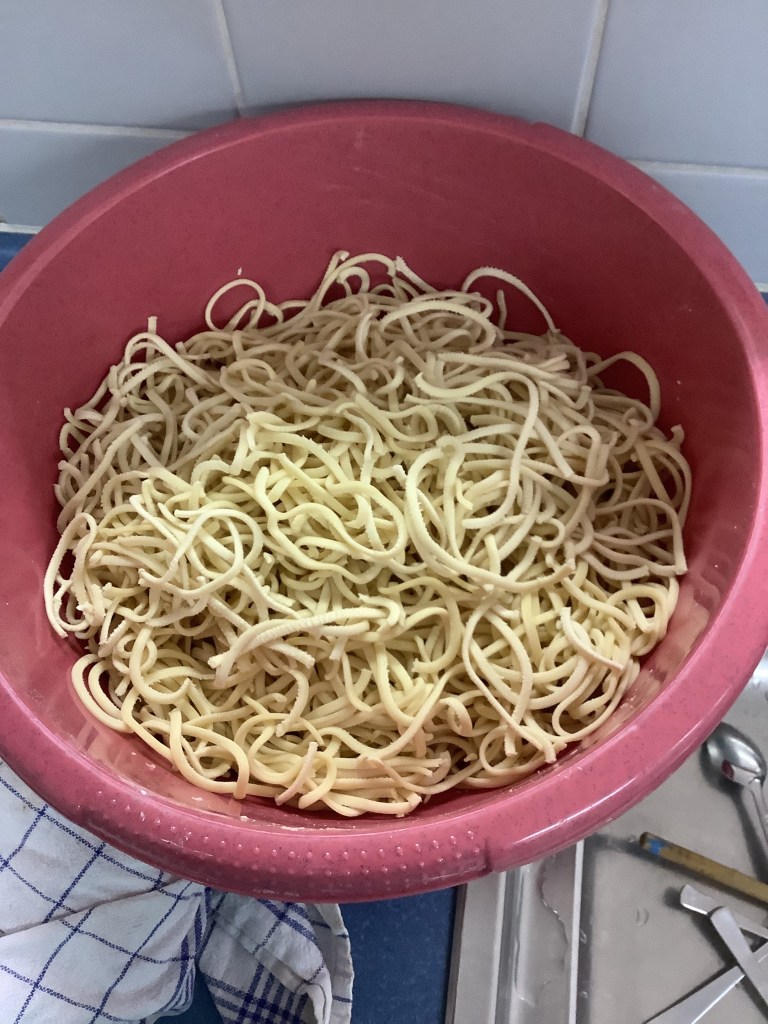 Am Mittwoch, den 1.2.2023 haben wir zusammen mit Herrn Wilhelm Nudeln gekocht. Zuerst haben wir eine Einkaufsliste geschrieben und die Aufgaben verteilt. Vier Schüler*innen sind einkaufen gegangen, während die anderen die Küche vorbereitet haben.