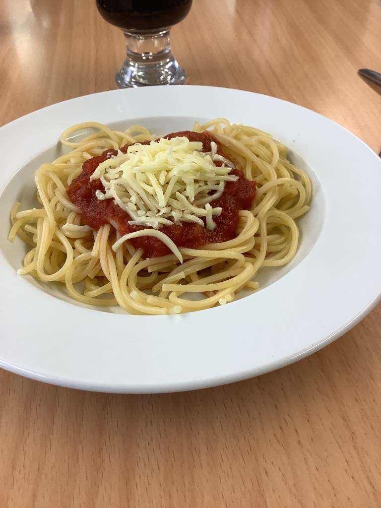 In der Zwischenzeit haben wir Nudeln selbst gemacht und einen leckeren Nachtisch aus Haferkleie, Marmelade, Jogurt, Blaubeeren und Bananen zubereitet. Dann haben wir die Soße verfeinert und die Nudeln gekocht. Endlich konnten wir essen. Es war sehr lecker und wir haben viel gegessen.