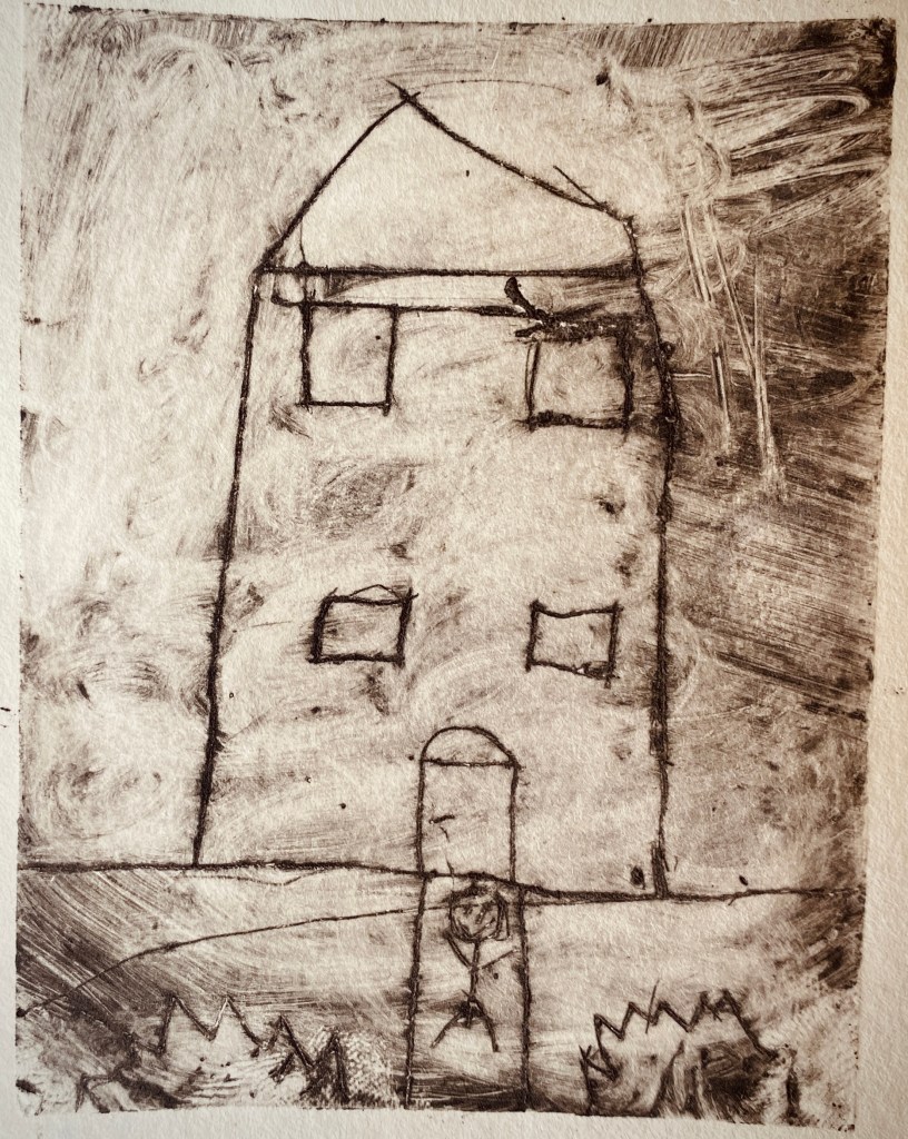 Aus unseren Bildern haben wir dann Radierungen gemacht. Wie das geht, zeigte uns Annika, eine Kunststudentin der Hochschule in Trier: