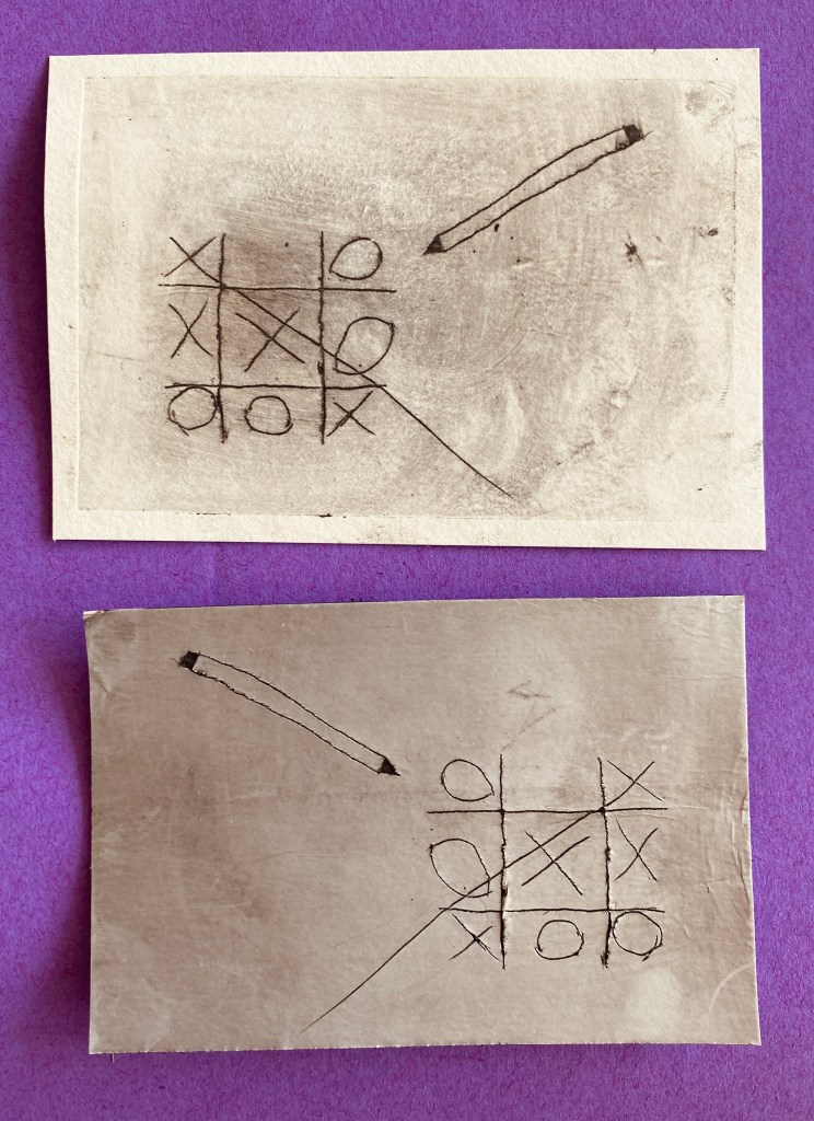 Wir haben kein Metall, sondern beschichtete Getränkekartons für unsere Druckvorlagen verwendet und als Druckerpresse eine Nudelmaschine benutzt. Das hat super geklappt!