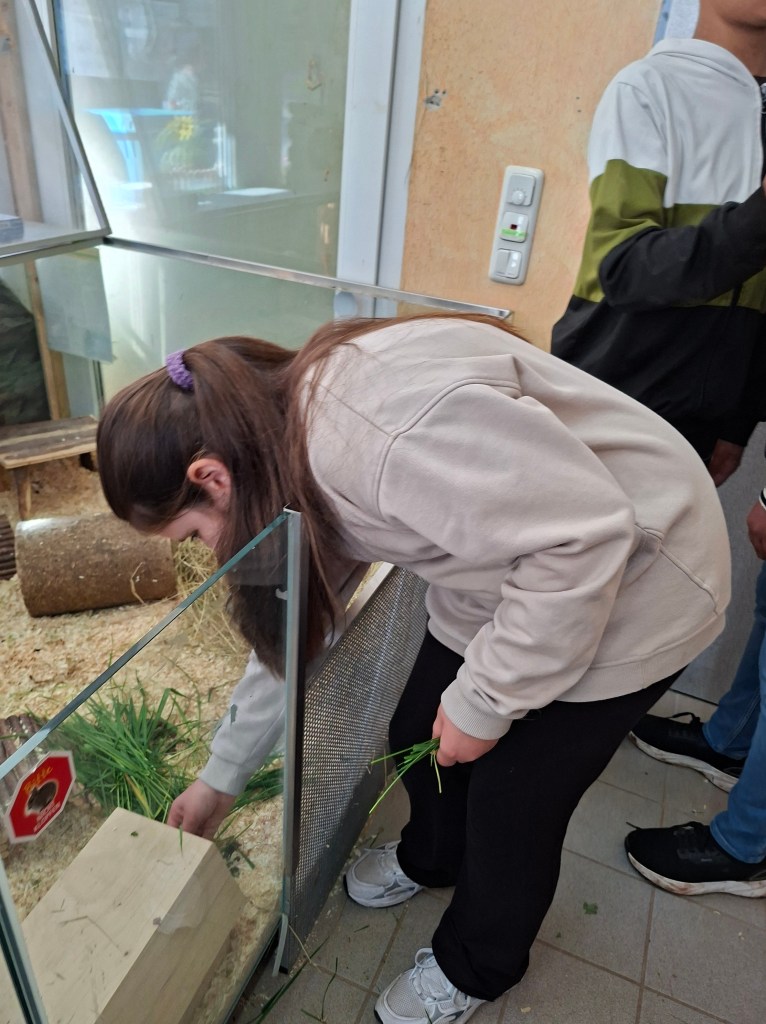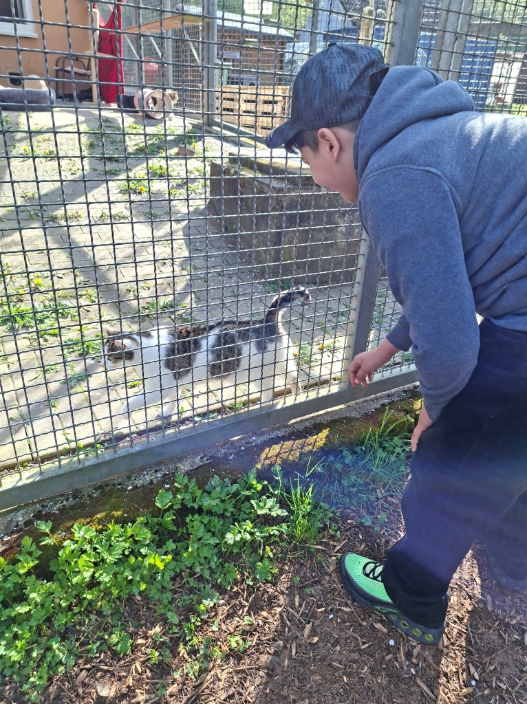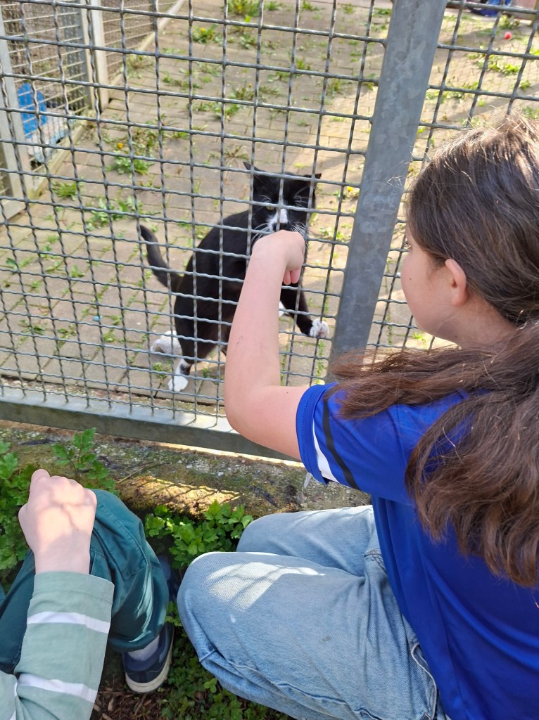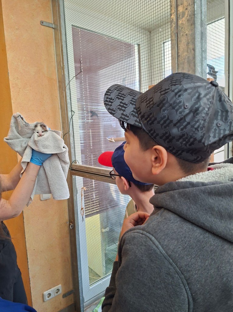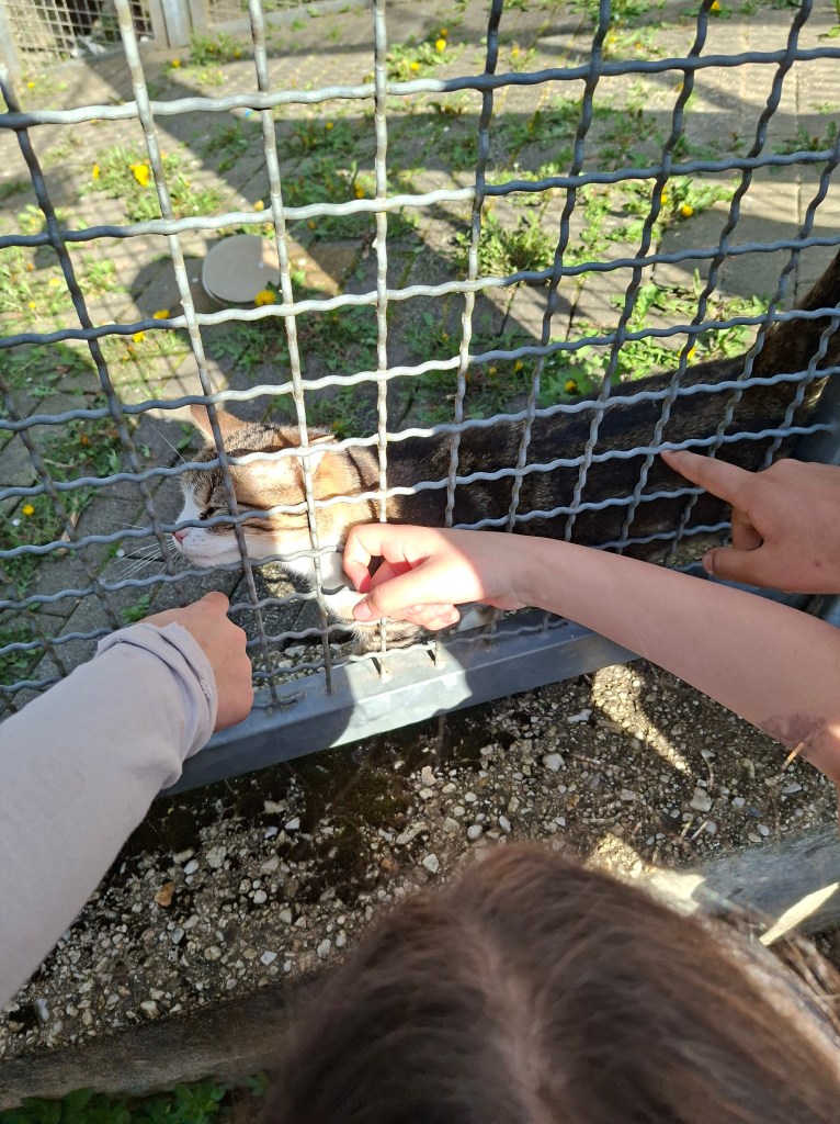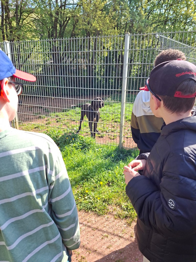Am 15.04.26 haben wir dann das Tierheim besucht und unsere Spenden mitgebracht. Frau Falkenhorst hat uns alles im Tierheim gezeigt und unsere Fragen beantwortet. Dort sahen wir viele Hunde, Katzen, Hasen und eine Ziege. Im Tierheim standen auch viele Baufahrzeuge, weil ein neues Hundehaus gebaut wird. Viele Hunde bellten uns an. Manche Hunde brauchen einen Maulkorb, andere nicht. Die Katzen waren sehr freundlich und kamen sofort an den Zaun und schnurrten. Die Kaninchen hoppelten in ihren Gehegen und wir durften sie mit Gras füttern.