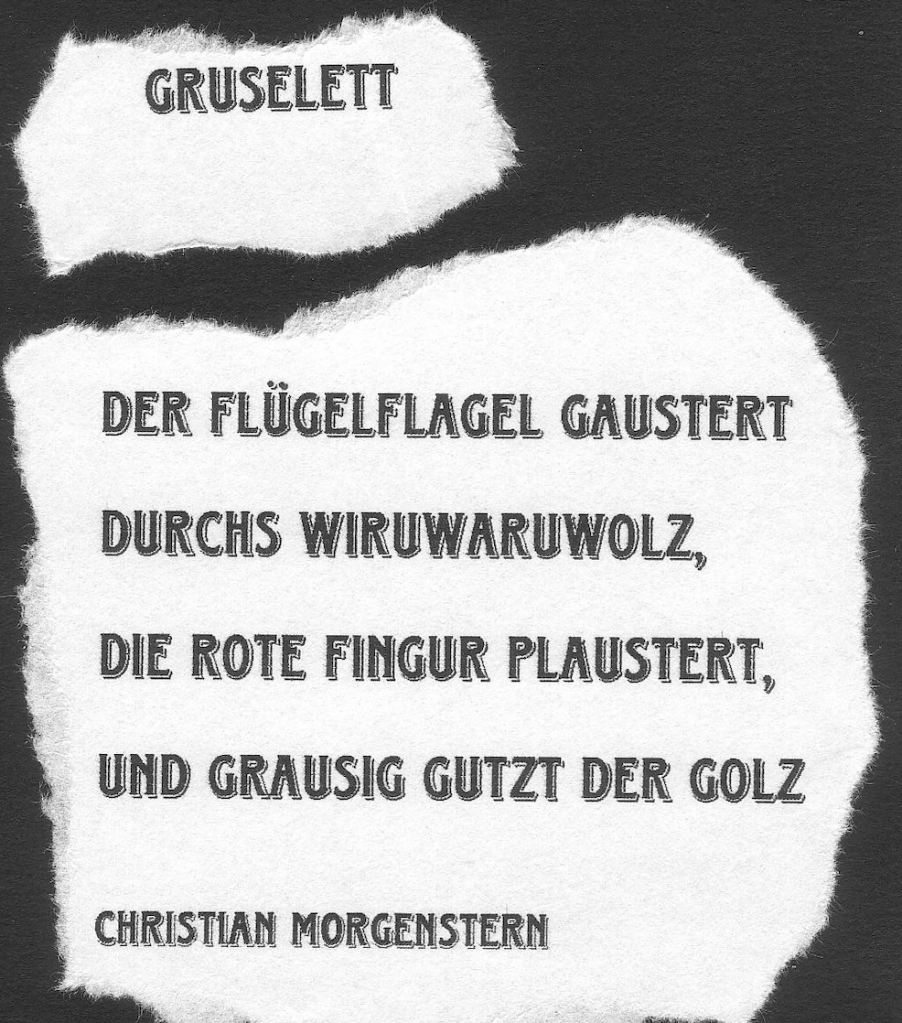 In dem verrückt-gruseligen Gedicht GRUSELETT von Christian Morgenstern tauchen seltsame Gestalten auf: Der Flügelflagel, die rote Fingur und der grausige Golz. Wie die wohl aussehen? Mohammed hat sie für uns gemalt: